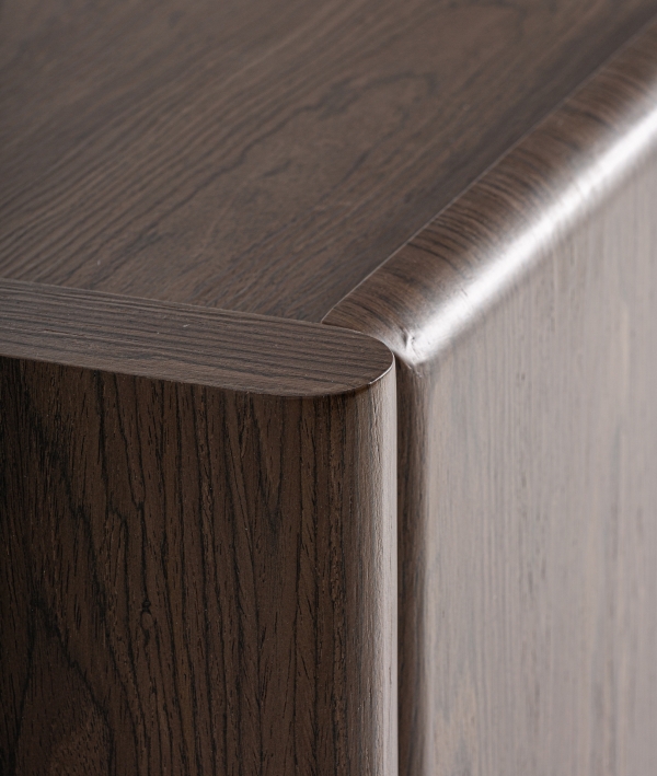 El aparador Arko de la marca KODU combina estética robusta y líneas limpias en madera marrón, una pieza clave en proyectos contract elegantes.