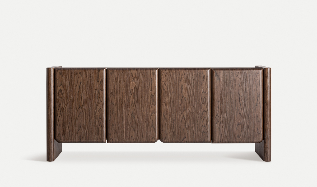 Aparador Arko de la marca KODU destaca por su diseño robusto y atemporal, una pieza que une funcionalidad y elegancia en espacios sociales modernos.