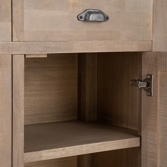 Material: madera de pino. Medida cajones: 40.5×21.5cm. Medida puertas: 40.5×52.5cm. Leja interior, altura entre huecos 25cm.