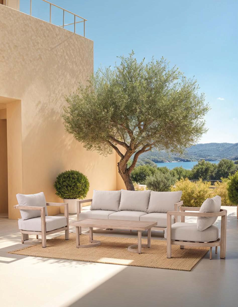 La colección Eva destaca por sus líneas curvas y detalles envolventes, creando un conjunto elegante y acogedor que invita a disfrutar del exterior con calma. Compuesto por sofá de 3 plazas, dos sillones y mesa auxiliar, aporta equilibrio y armonía a cualquier terraza o jardín.