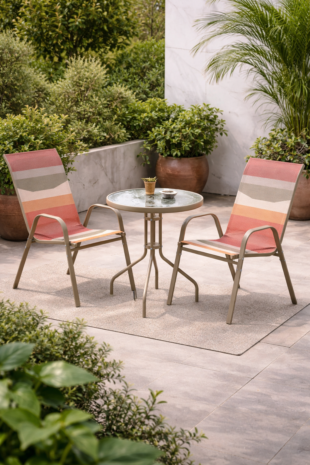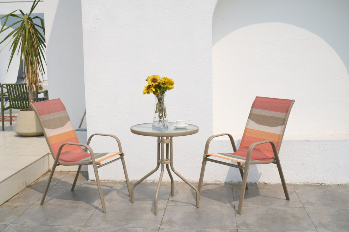 Material: acero, cristal, poliéster/textileno