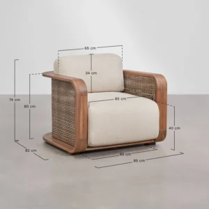 Materiales: madera, poliéster, ratán sintético, espuma