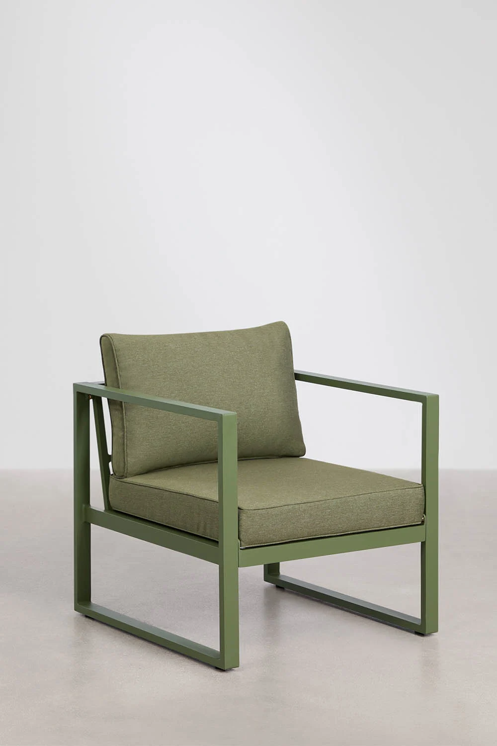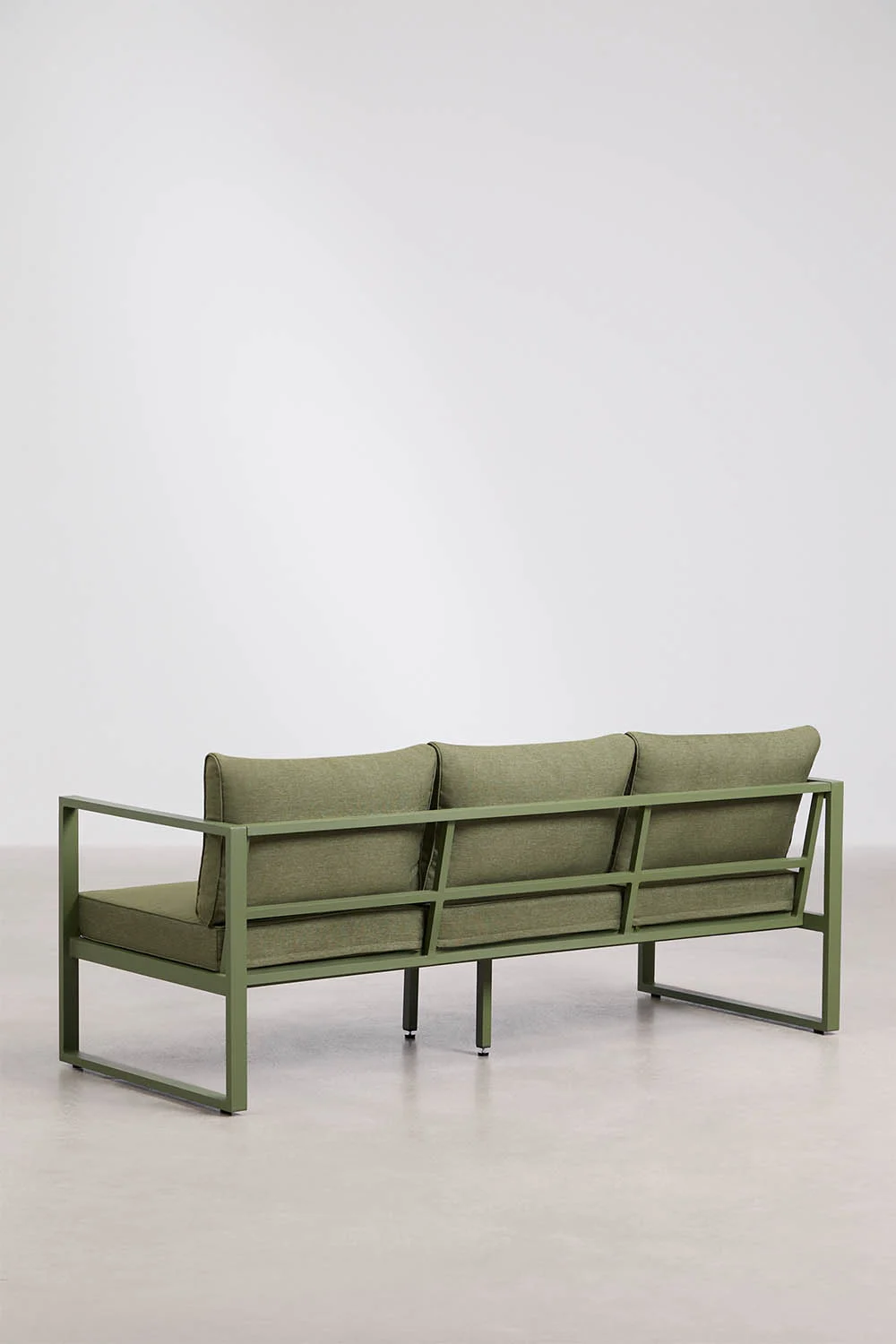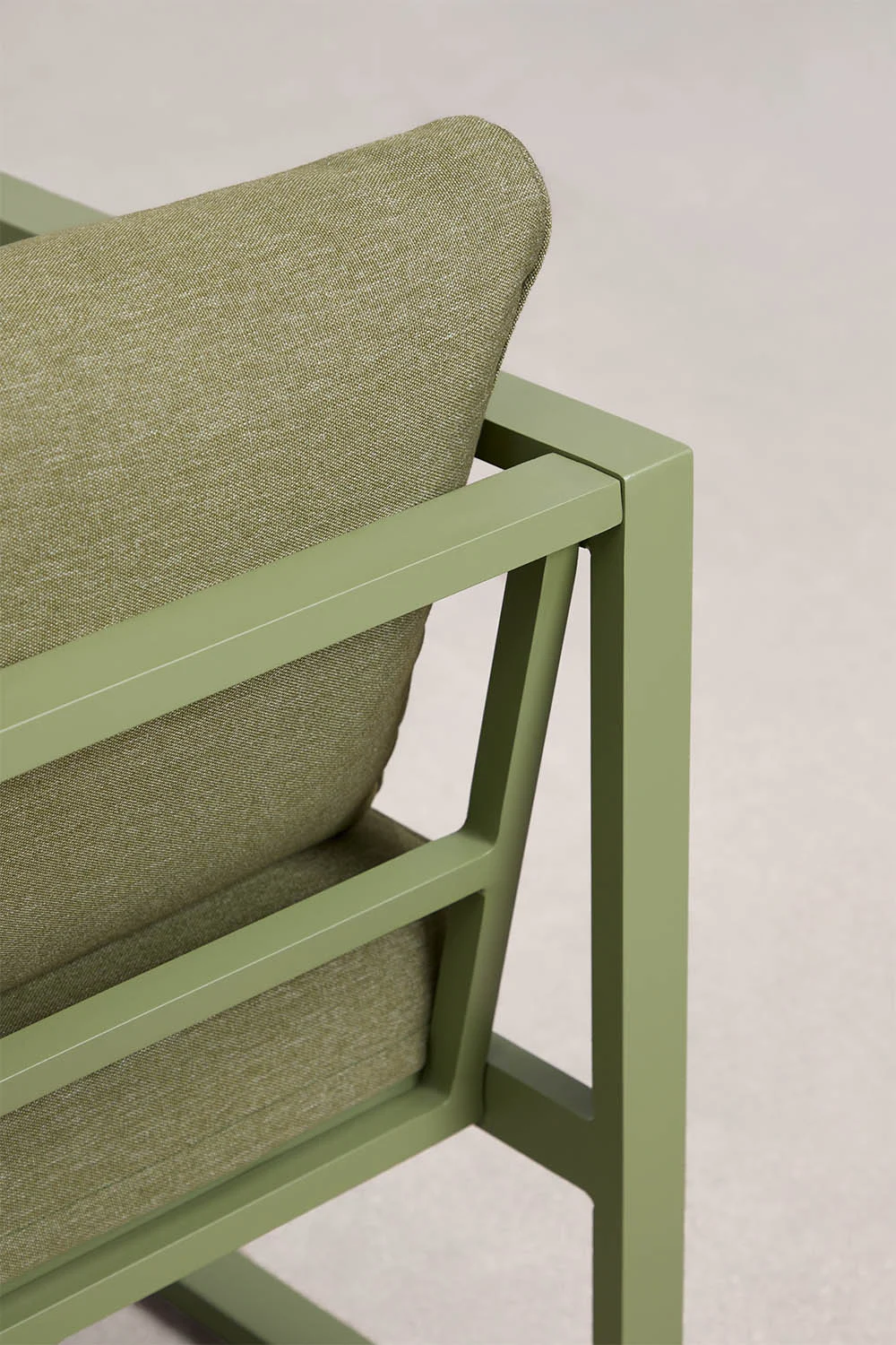 Su estructura metálica garantiza durabilidad y ligereza visual, mientras que los cojines acolchados y tapizados en poliéster invitan a un descanso prolongado. Los mullidos respaldos y asientos con relleno de fibras sintéticas y espuma con densidad 18 kg/m³