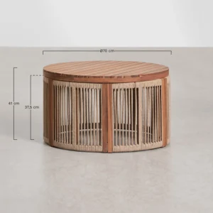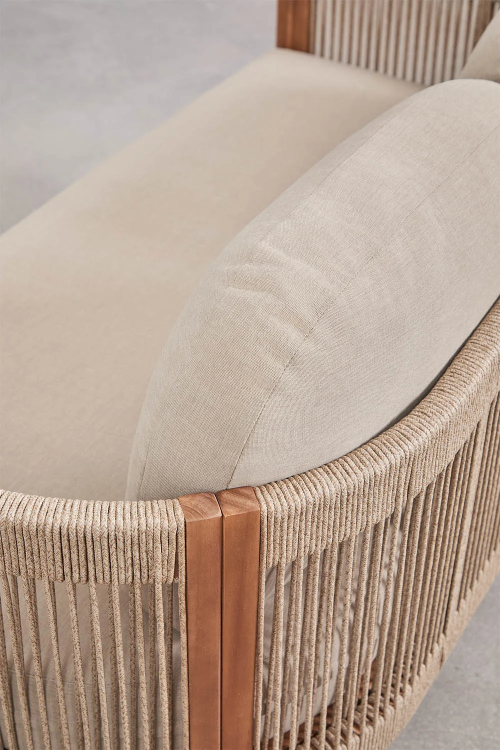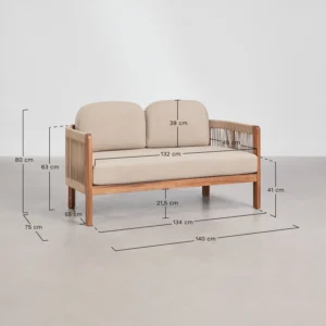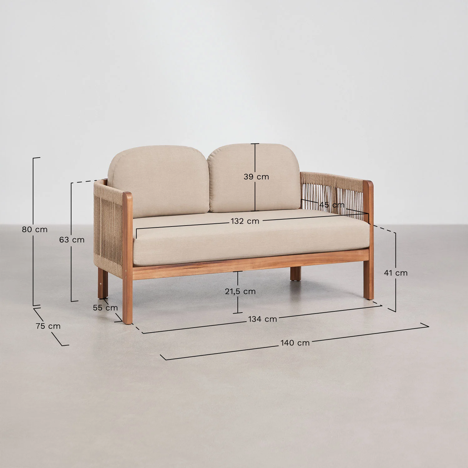 ¿Tienes una terraza o patio pequeño, pero quieres sacarle el máximo partido? Con el Conjunto de jardín con sofá de 2 plazas y mesa de centro en madera de acacia tendrás la solución. Su diseño ha sido especialmente cuidado para aportar tanto ese toque desenfadado como esa elegancia tan buscada. Para ello, su estructura ha sido elaborada con madera de acacia, un material que destaca por su durabilidad y por la elegancia de su textura, que se potencia con el acabado en aceite. Además, se ha añadido cuerda trenzada de poliéster tanto en la base de la mesa como en el respaldo y reposabrazos del sofá para ayudar en la solidez de su arquitectura, como aportar un toque artesanal que atrae todas las miradas. Sin embargo, no solo es esto lo que hace que te enamores, sino la comodidad que nos ofrecen sus cojines rellenos de espuma con densidad 20 kg/m³, y recubiertos por un tejido de 100% olefina con tratamiento antimanchas y repelente al agua. Además, estos poseen una cremallera que los convierte en desenfundables y te permitirá realizar un correcto mantenimiento de su tela. Para cuidar tus suelos, se han añadido tacos de protección de plástico, siendo ajustables los de la mesa. Exprime al máximo los exteriores de tu hogar y crea rincones de ensueño con el mobiliario de jardín de ARTISA.