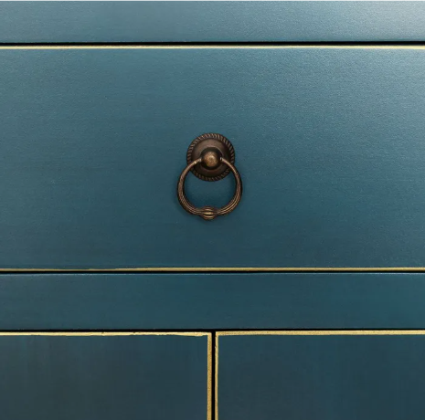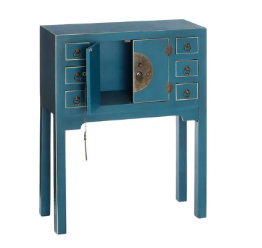 Consola Oriente azul – 2 puertas · 6 cajones – 63 × 26 × 80 cm
