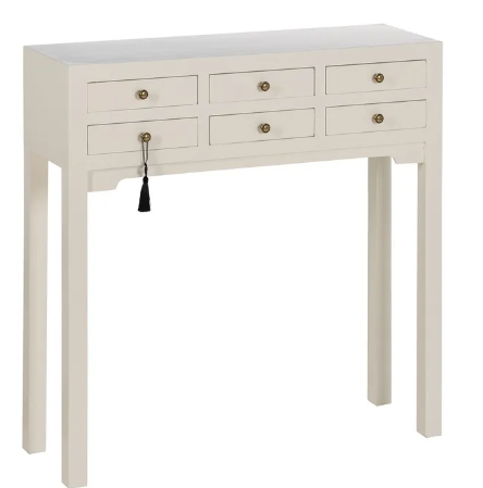 Encimera estrecha (26 cm de fondo) ideal para lámparas, cuadros o elementos decorativos sin ocupar demasiado espacio en el recibidor.