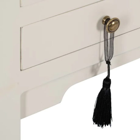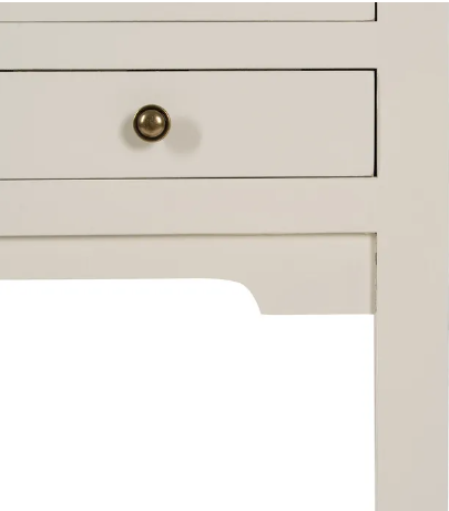 Esta consola en blanco, perteneciente a nuestra línea permanente, combina la sobriedad del DM lacado con la calidez de las patas altas de abeto (60 cm), aportando ligereza visual y un claro aire oriental.