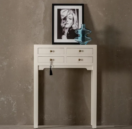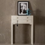 Esta mesita forma parte de la colección permanente Oriente y une la calidez de la madera con un diseño limpio de inspiración oriental. Fabricada en DM lacado en blanco, se alza sobre patas de abeto de 7 cm, lo que estiliza la pieza y facilita la limpieza del suelo.