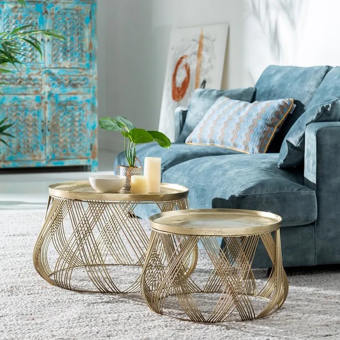 Este elegante set de 2 mesas de centro combina diseño moderno y funcionalidad, ideal para complementar cualquier salón con un toque sofisticado. Fabricadas completamente en hierro con acabado dorado, estas mesas aportan estabilidad y estilo contemporáneo.