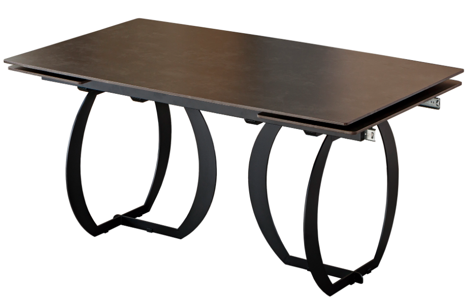 Esta mesa de comedor extensible combina diseño contemporáneo y funcionalidad. Su tapa y extensibles están elaborados en material cerámico de alta resistencia, acabado Ceramic Vulcano, que imita el aspecto natural de la piedra.