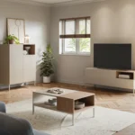 CAILIN es una colección moderna, que combina un lacado crema con tonos de madera natural. Disponemos de mueble aparador de grandes dimensiones, mesas de televisión, mueble auxiliar y mesas de centro.