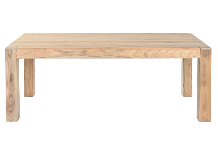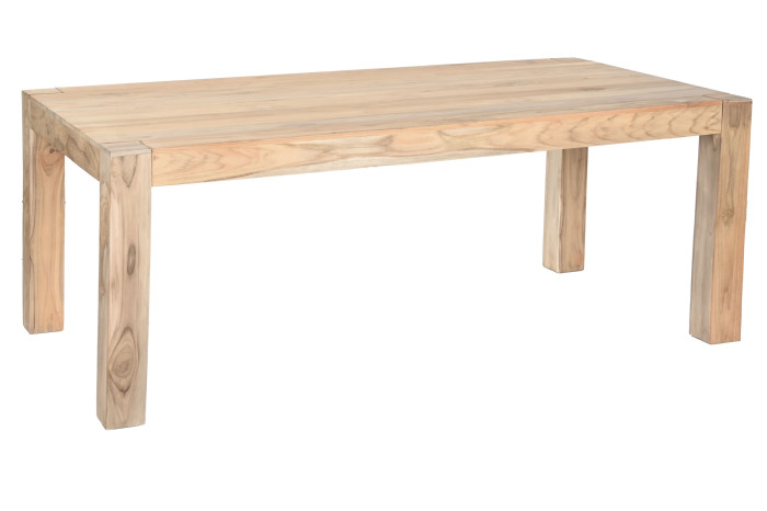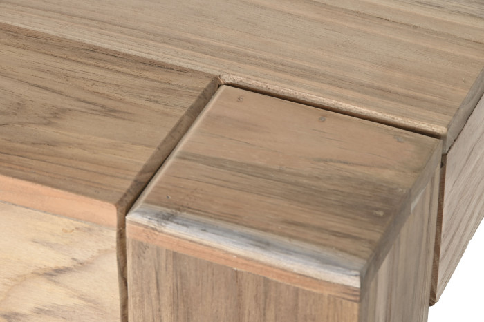 Lo primero que enamora es su diseño nórdico súper limpio, sin tonterías, de ese que queda bien en todas partes y no te cansa a los dos años. Pero lo mejor de verdad es la madera. Es de teca considerada una madera de lujo por su extrema durabilidad, resistencia natural al agua, humedad y tiene una veta espectacular, con unos tonos cálidos que hacen la casa súper acogedora. Te juro que cada mesa es un poco diferente, tiene su propia personalidad.