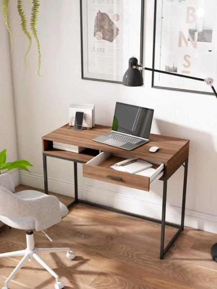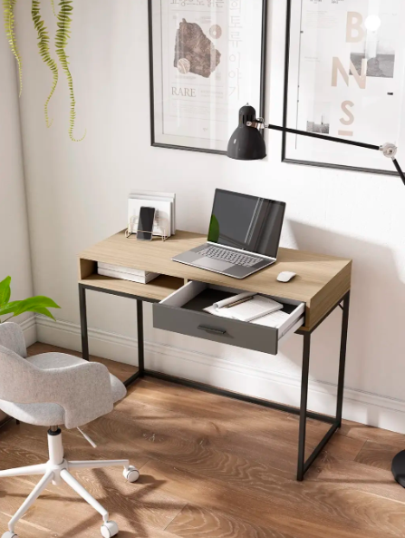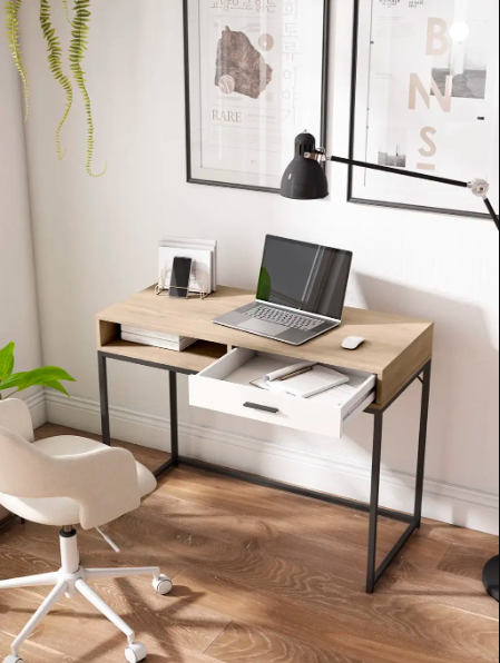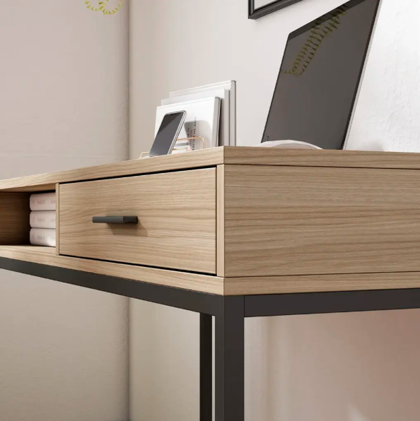 El Herdasa Kent 620 es un escritorio de líneas actuales fabricado en melamina y apoyado sobre patas metálicas negras para mayor estabilidad y un look contemporáneo. Integra un cajón y un compartimento bajo la tapa principal que facilitan el orden de material de trabajo, cables o cuadernos. Elige el acabado que mejor se adapte a tu despacho o área de estudio.