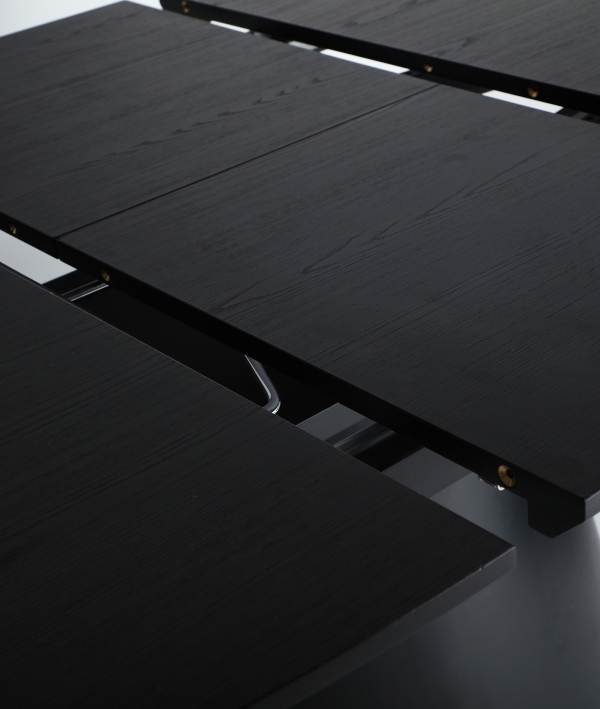 Un diseño funcional con una estética impecable. La mesa extensible LIZANT, fabricada en melamina negra y madera DM, aporta modernidad y versatilidad a cualquier comedor, siendo el centro de reuniones inolvidables.