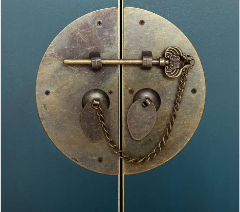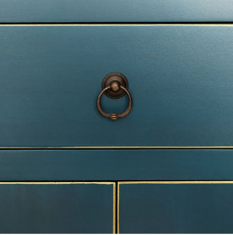 Tiradores metálicos decorativos que realzan el carácter oriental de la pieza.