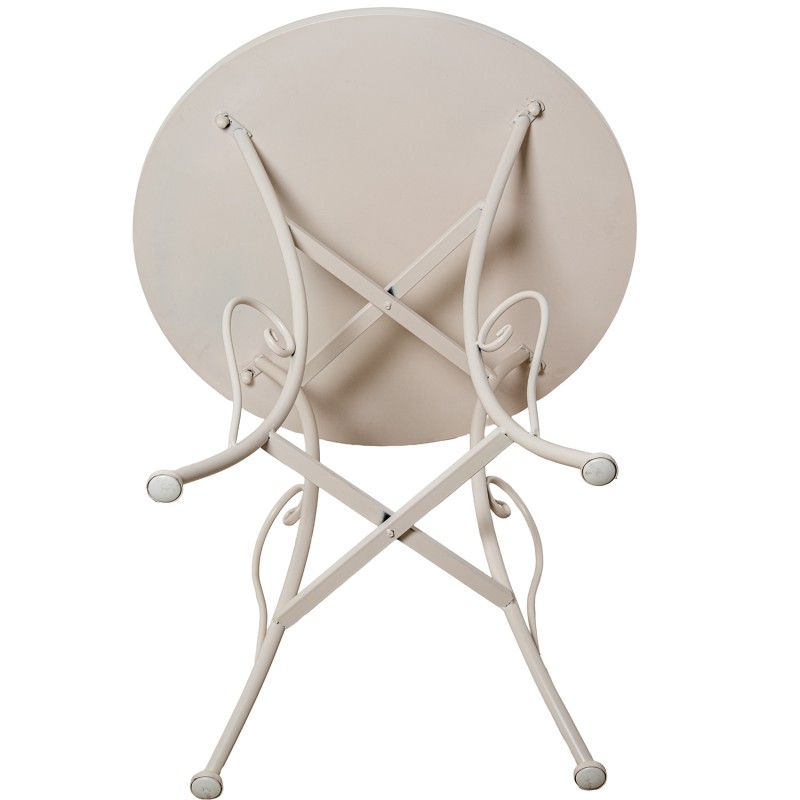 Este juego de bistró consta de una mesa redonda y dos sillas plegables.