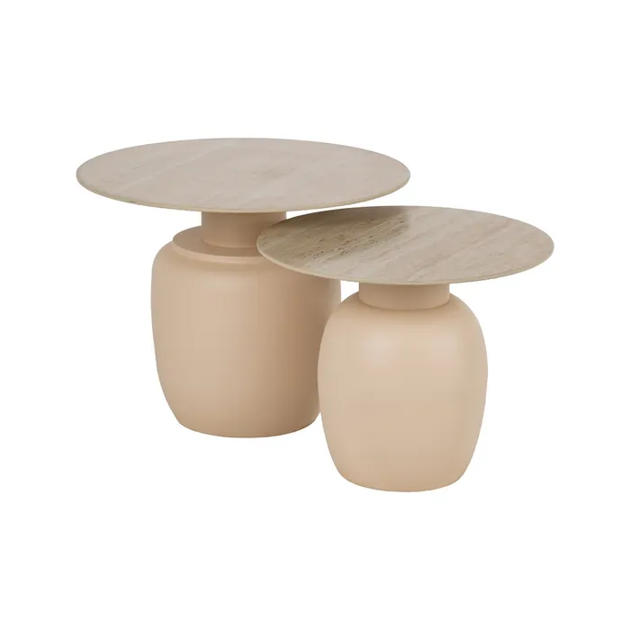 Set Mesa Auxiliar Cerámica Beige y Metal