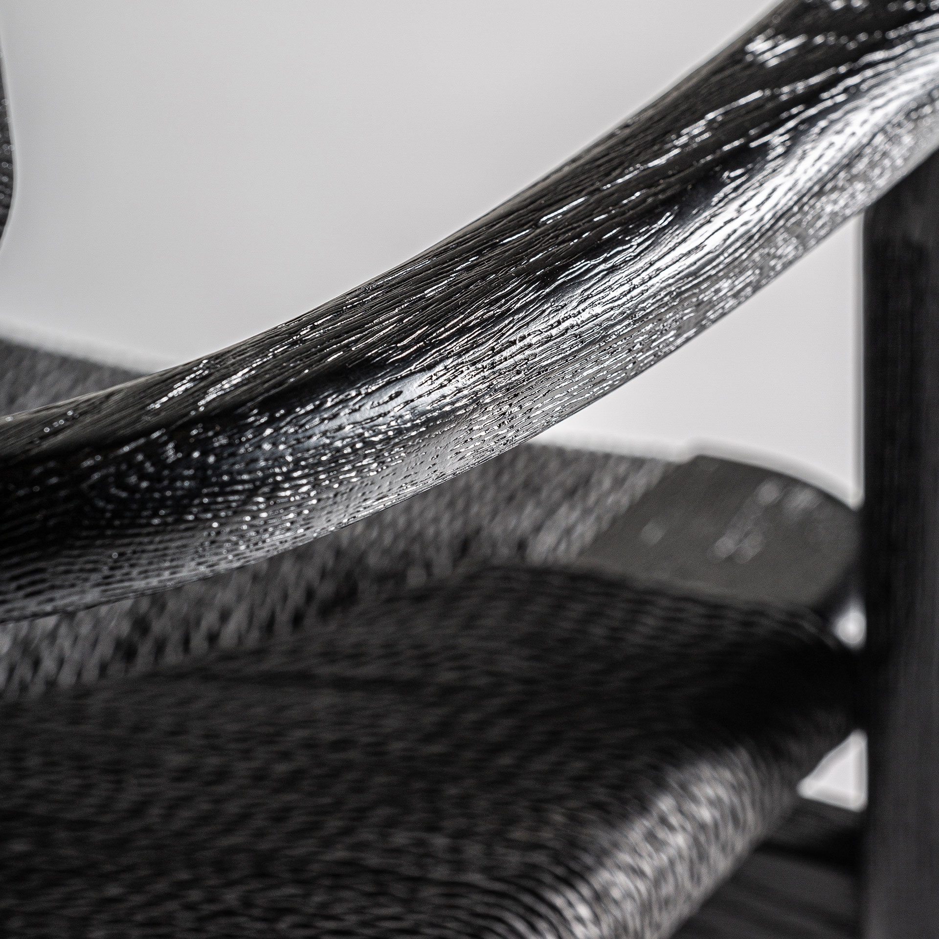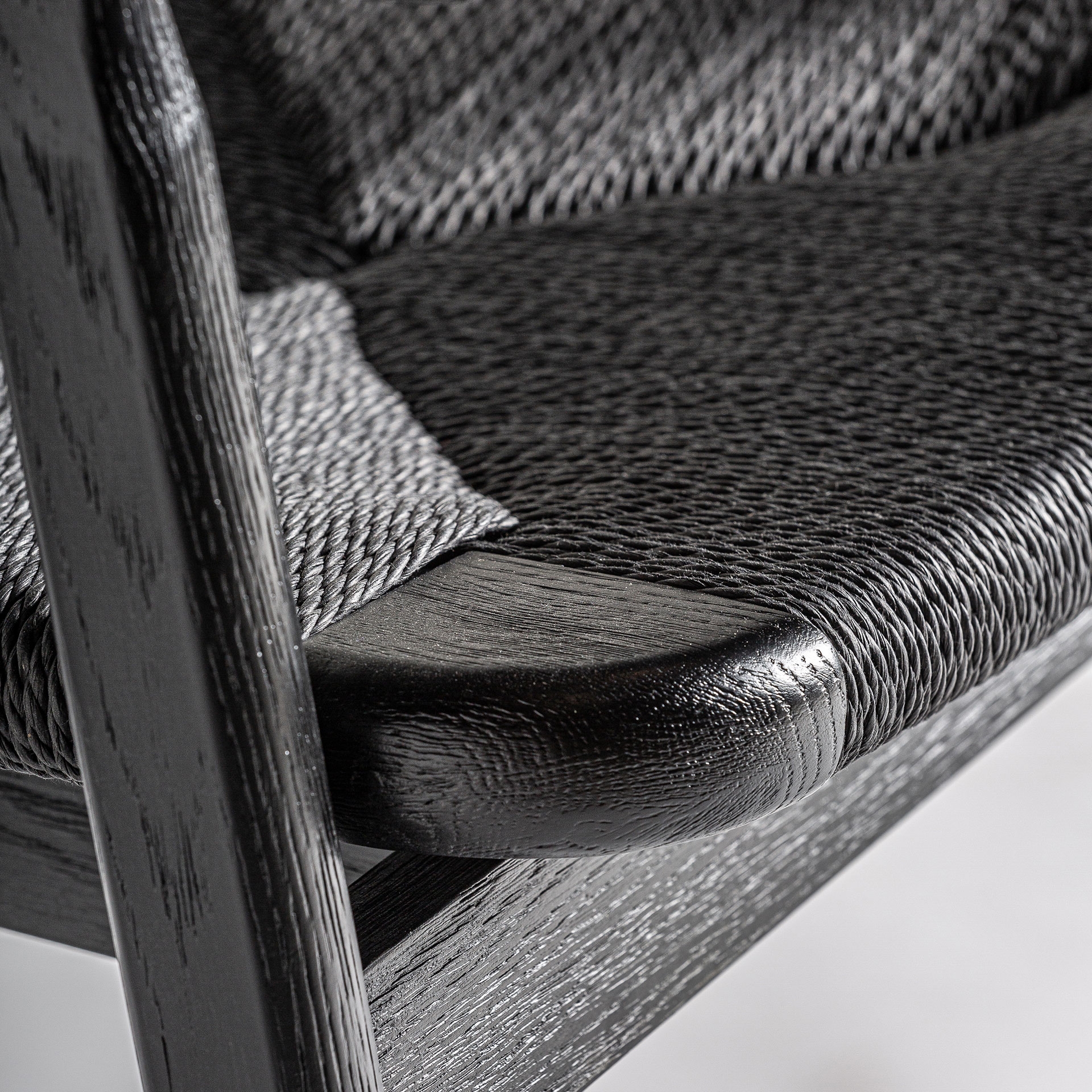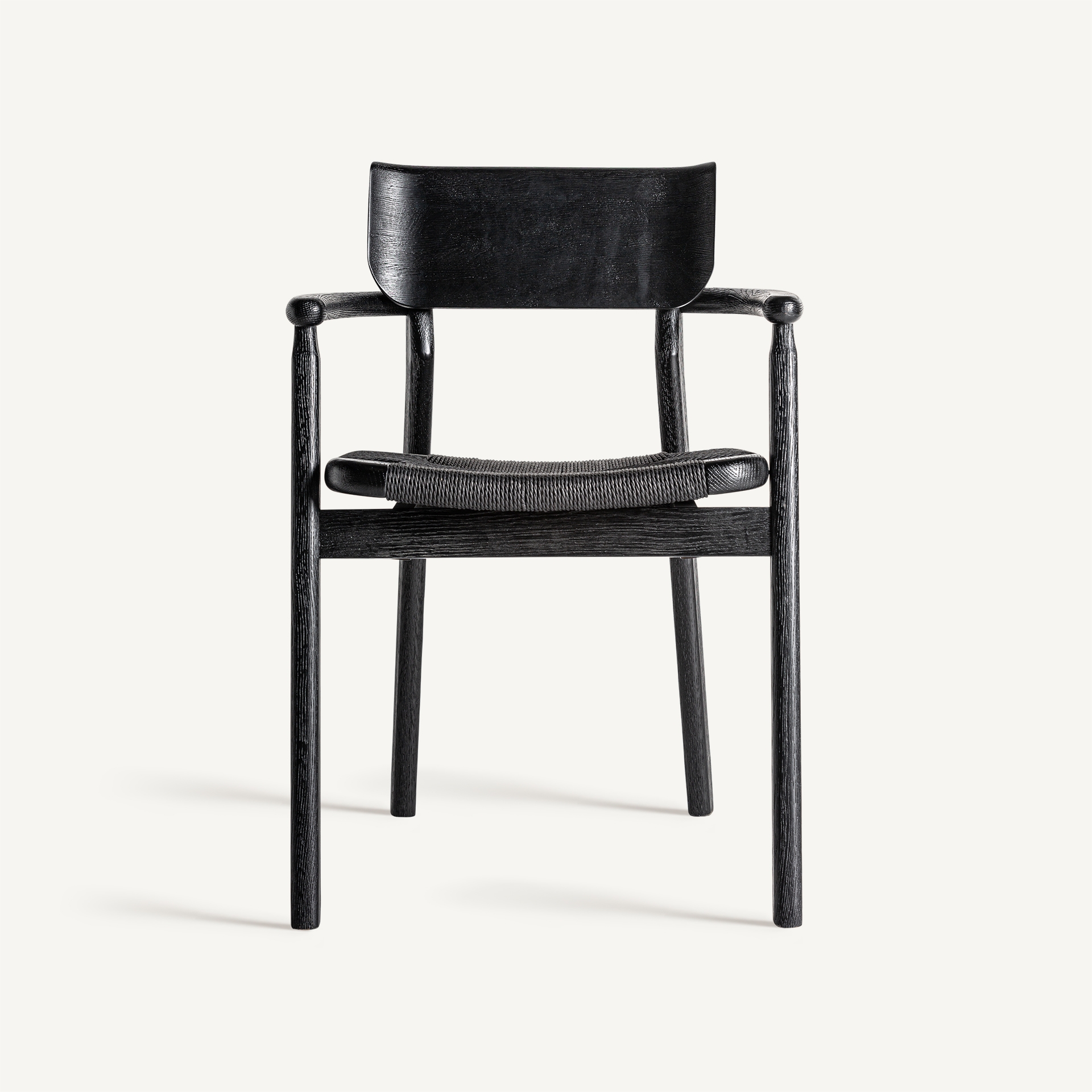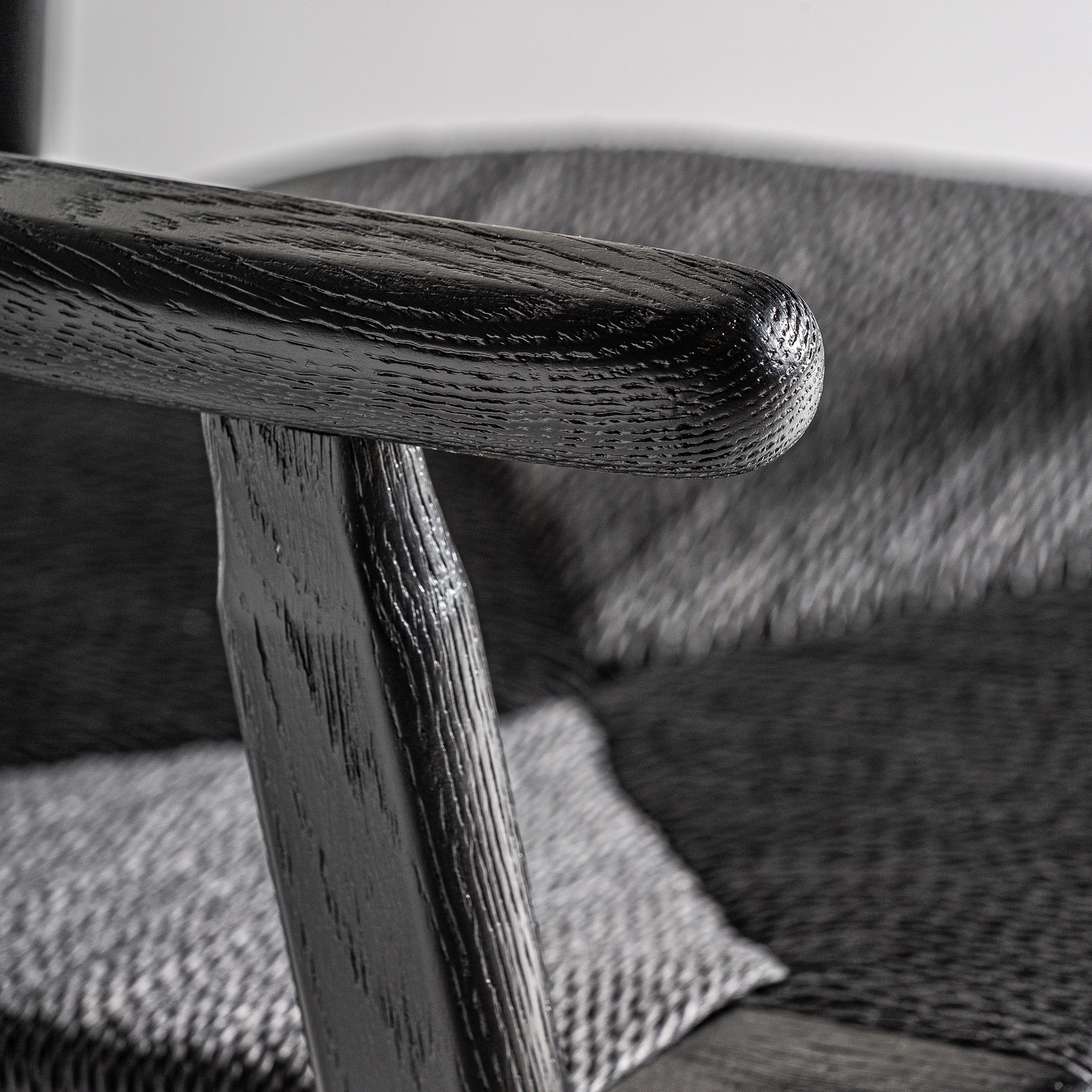 Este diseño de VICAL aporta calidez y estilo: la silla Tasque. Su estructura en roble negro mate y asiento de fibra natural negra crean un contraste visual que realza cualquier ambiente.