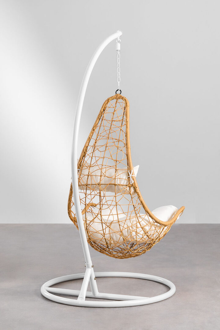 Completa tu zona chillout con el Sillón Colgante de Jardín con Cojín. Está fabricado en ratán trenzado de forma original sobre un tubo de hierro con recubrimiento en polvo. Incorpora dos cojines de poliéster impermeables con relleno de polycotton una mezcla de algodón y poliéster. Cuenta con una cadena de acero para colgar en el techo, también puedes comprarla junto a una base de hierro calvanizado. Esta última opción te permite mover el sillón de sitio a tu gusto.