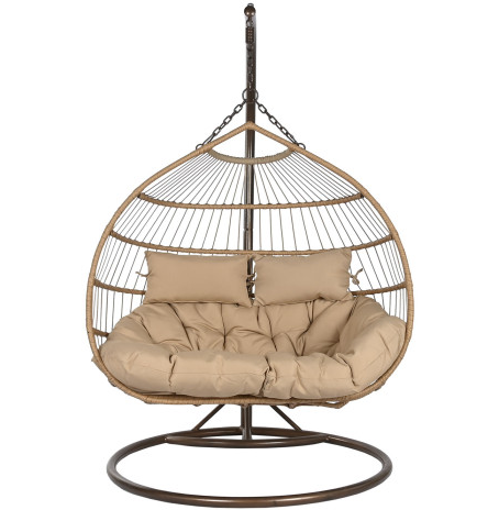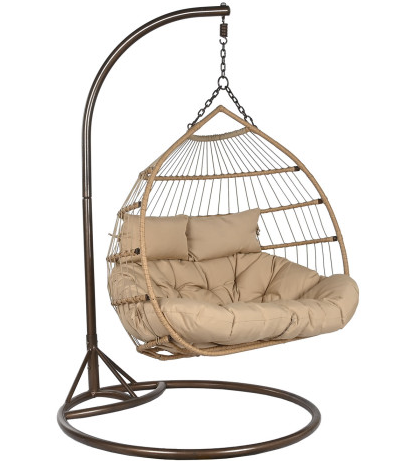 El sillón colgante de ratán sintético con base de 130 x 61 x 117 cm es una pieza ideal para crear zonas de descanso en terrazas, jardines, porches o interiores amplios. Su diseño con base integrada permite disfrutar del movimiento suave sin necesidad de anclajes a techo, ofreciendo comodidad y estabilidad desde el primer uso.