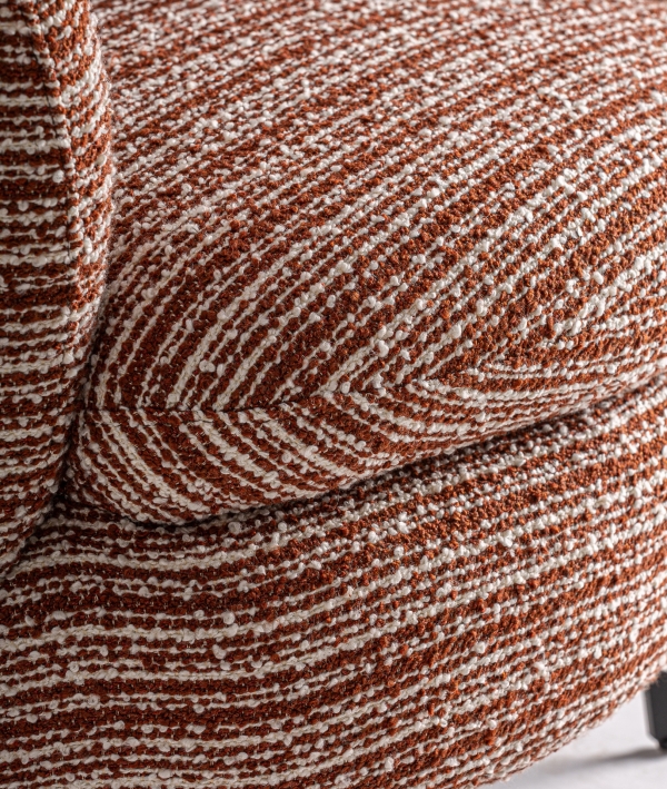 Su tonalidad cálida en terracota aporta carácter y sofisticación a cualquier espacio, mientras que su forma ergonómica que garantizan una experiencia de confort inigualable. Perfecto para crear un rincón de lectura, un ambiente contemporáneo o un toque de distinción en tu salón.