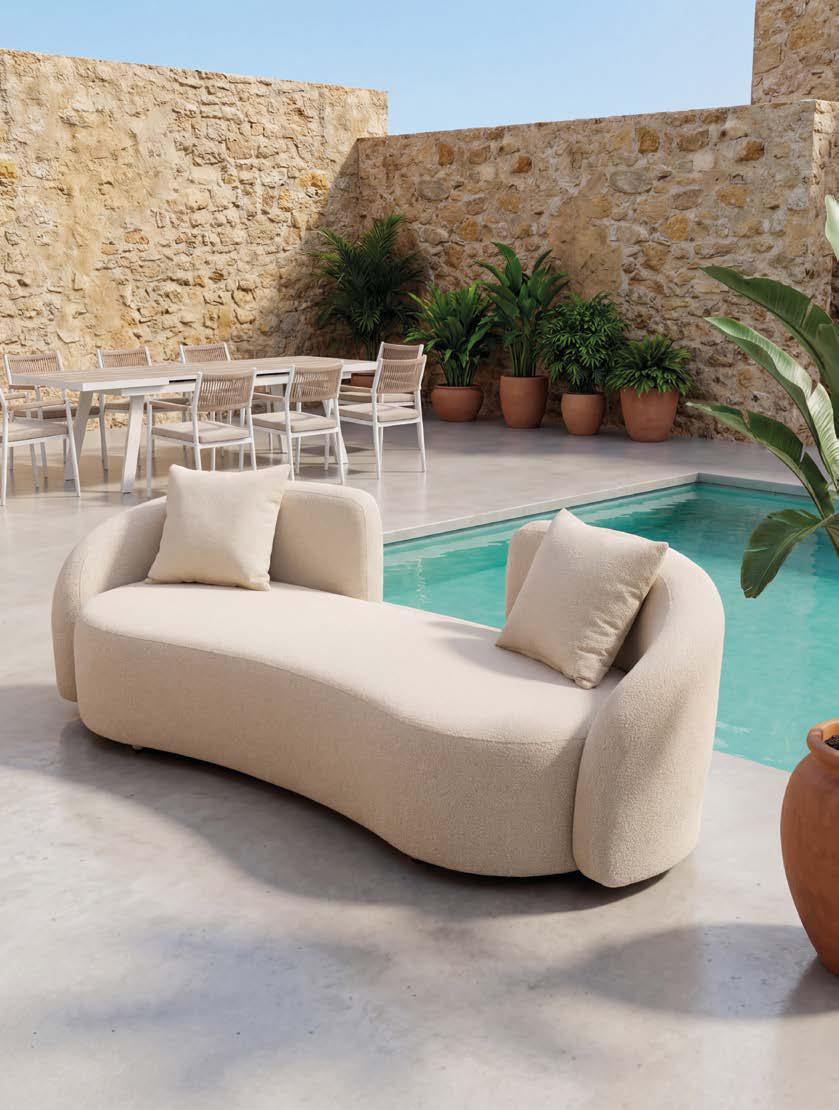 La colección Estepona redefine el mobiliario de exterior con sus formas orgánicas, suaves y envolventes, pensadas para crear espacios únicos donde desconectar y disfrutar sin prisas.