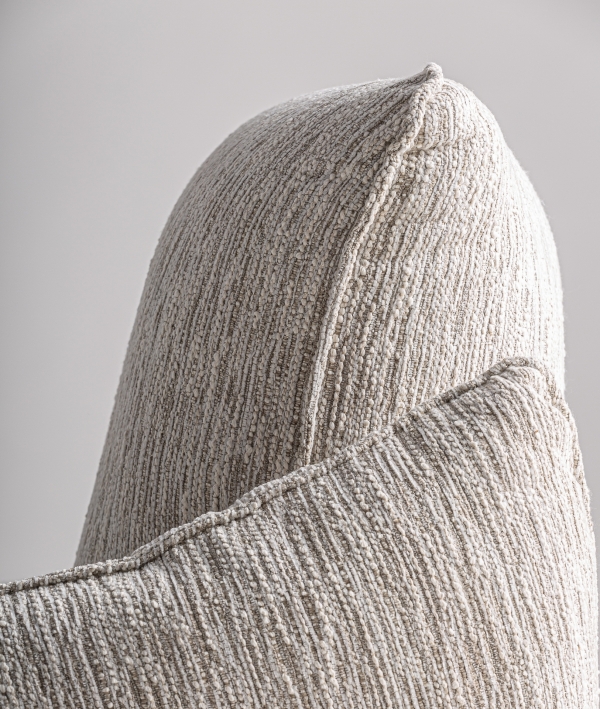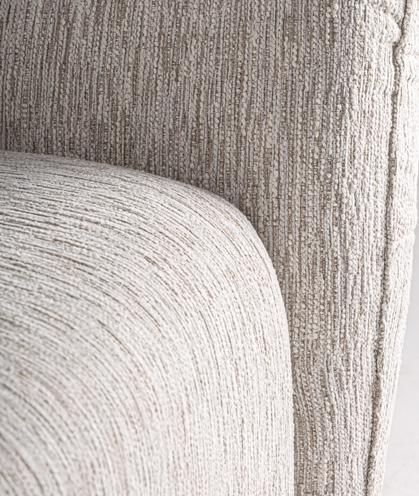 El sofá Milo de Kodu Design combina a la perfección diseño contemporáneo y comodidad. Su tapizado en un elegante tono jaspeado aporta calidez y estilo, mientras sus líneas suaves y envolventes invitan al descanso.