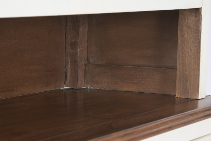 La madera de mango puede presentar una gran variedad de tonalidades debido a sus características. Podemos encontrar desde tonos marrones o dorados, pasando por el amarillo y rojo, e incluso se pueden encontrar partes más oscuras con tonalidades grises o negras. Este abanico de colores, forma parte de la belleza natural de este tipo de madera y hace que cada mueble sea único, pudiendo siempre haber diferencias de tonalidad y de color de uno a otro. Para una mayor durabilidad del producto.